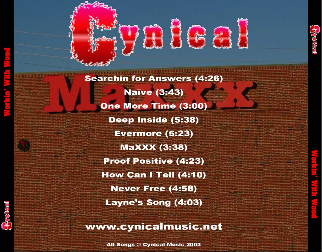 Cynical – Workin’ With Wood Searchin’ For Answers Naive One More Time Deep Inside Evermore MaXXX Proof Positive How Can I Tell Never Free Layne’s Song Share this: Share on X (Opens in new window) X Share on Facebook (Opens in new window) Facebook Like Loading...